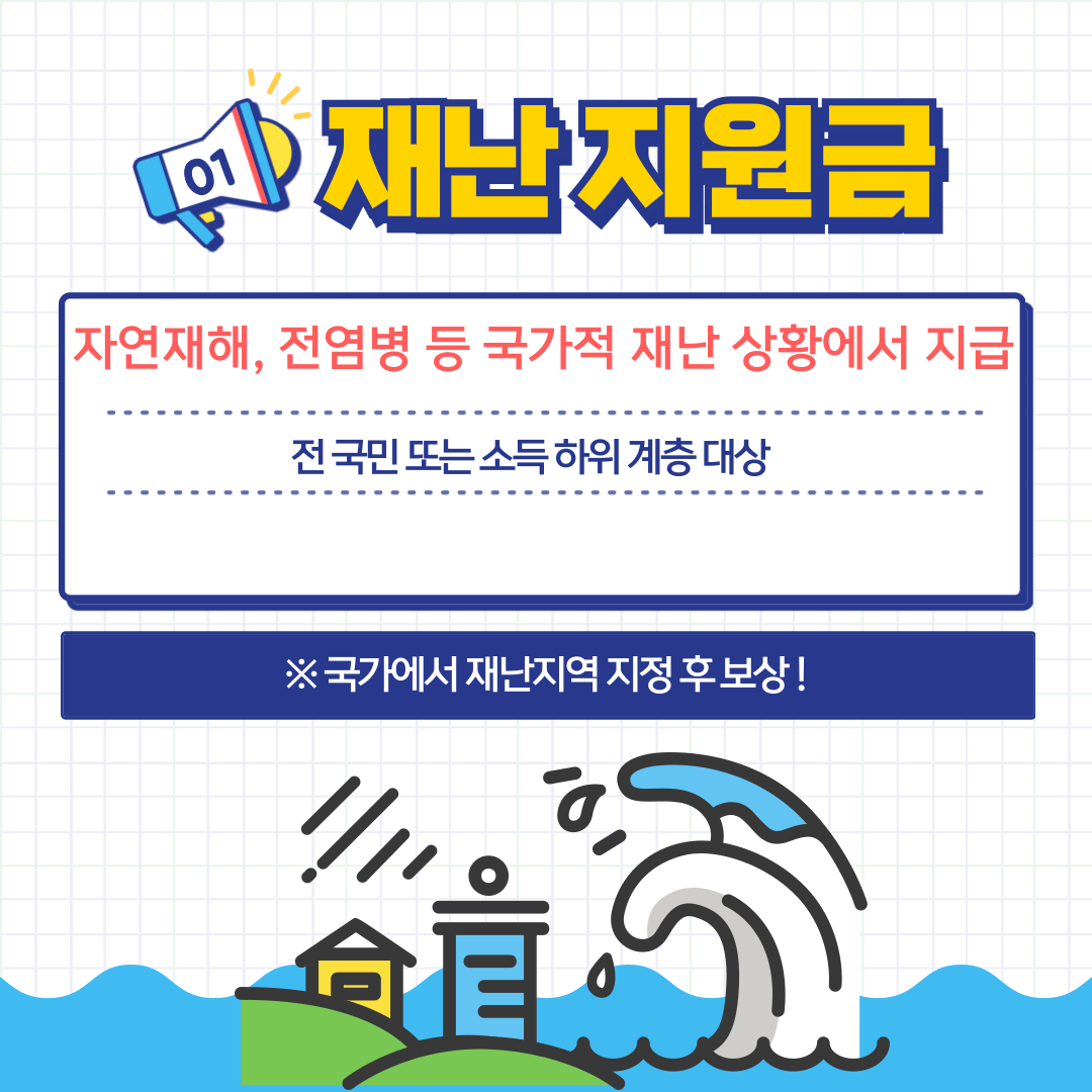 - 자연재해, 전염병 등 국가적 재난 상황에서 지급
