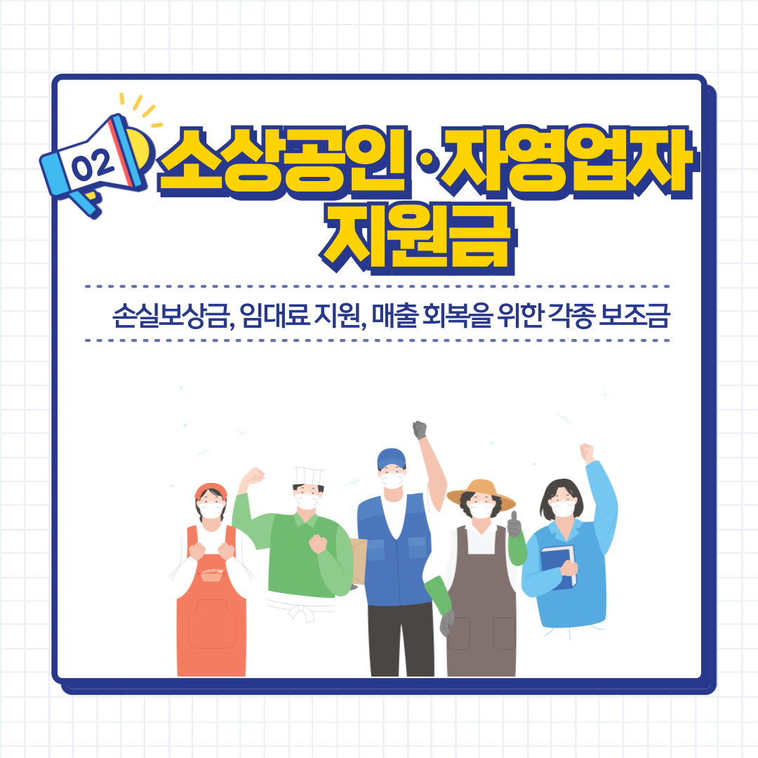 - 손실보상금, 임대료 지원, 매출 회복을 위한 각종 보조금