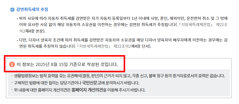 감면 혜택을 받은 후 차량을 양도하거나 등록 말소하면 취득세를 추징당할 수 있습니다. 1년 이내에 다시 취득하는 경우, 추징된 취득세는 감면 대상이 아니니 주의해야 합니다.