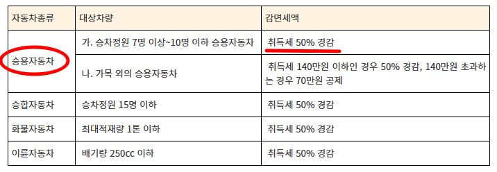 | 차종 | 감면 조건 |