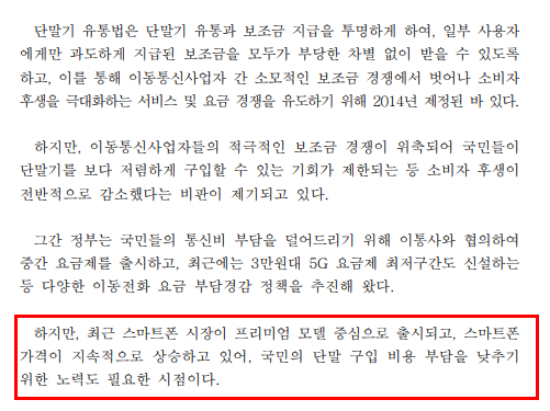 단통법은 스마트폰과 같은 단말기 구입 시 과도한 보조금을 지급해 소비자 간 차별을 유발하고,