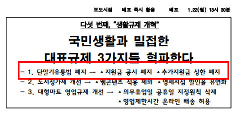 3가를 혁파 한다. 는 내용 중 대형마트 영업규제 개선에 대한 글로 돌아 오겠습니다.