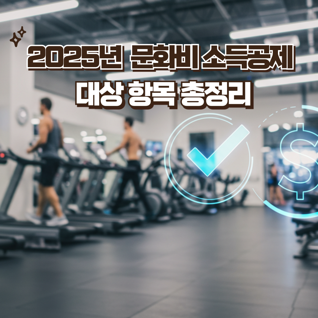 헬스장 비용, 연말정산 환급받는 법! 2025년 문화비 소득공제 대상 총정리 2025년 7월부터 새롭게 시행되는 '체육시설 이용료 소득공제'! 헬스장, 필라테스, 수영장 비용도 연말정산에 포함됩니다. 복잡한 소득공제 개념부터 대상 항목, 주의사항까지 한눈에 파악하고 똑똑하게 세금 혜택을 챙겨보세요!