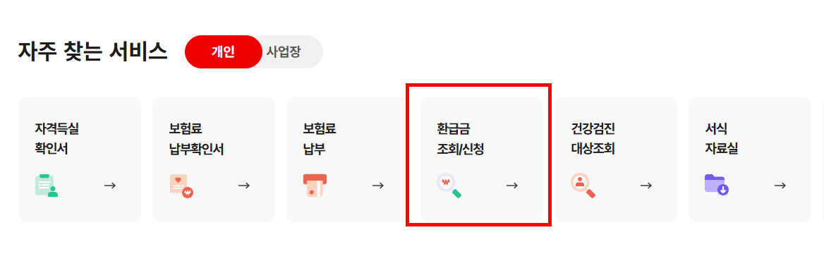 환급금 조회/신청' 메뉴에서 신청.