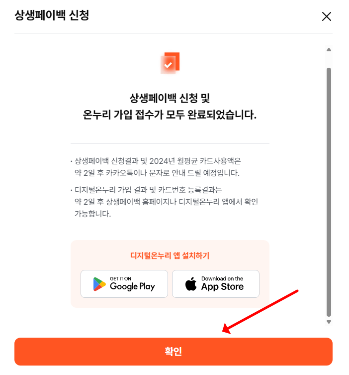 STEP 6 신청하기 선택하면 상생페이백 신청 완료!