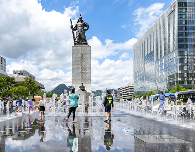 세종대왕 동상 뒤편 광화문광장에 설치된 핵심 물놀이 공간