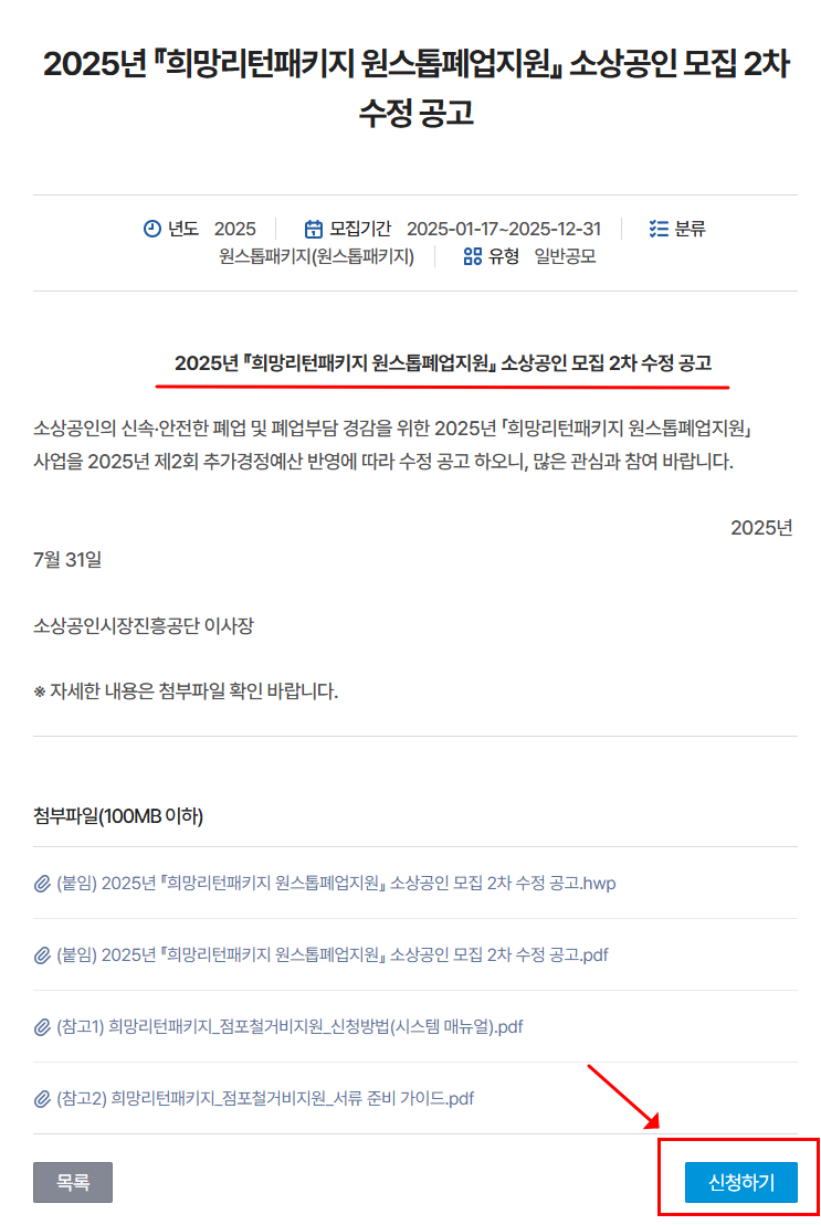 지원사업 명칭: 희망리턴패키지 (소상공인시장진흥공단)