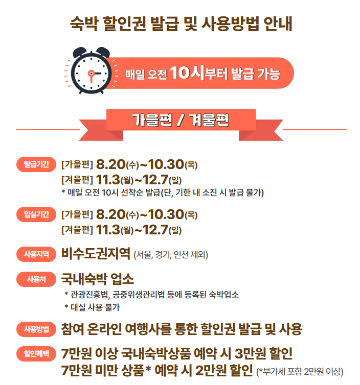| 가을편 (비수도권) | 2만원 할인 | 2만원 초과 ~ 7만원 미만 결제 시 |