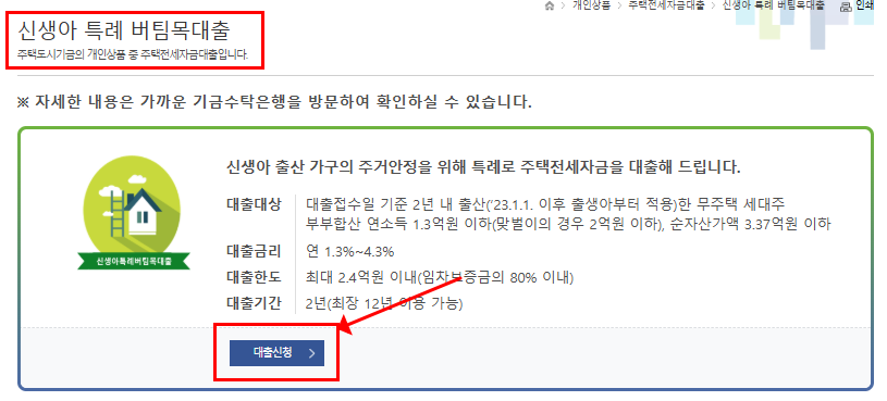 - 대상: 대출신청일 기준으로 2년 내 출산한 1주택 가구