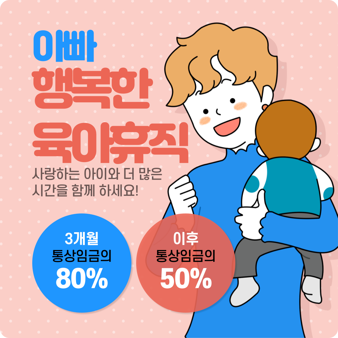 둘째 부모(주로 아빠)가 육아휴직을 사용할 경우 급여가 더 높게 지급됩니다.