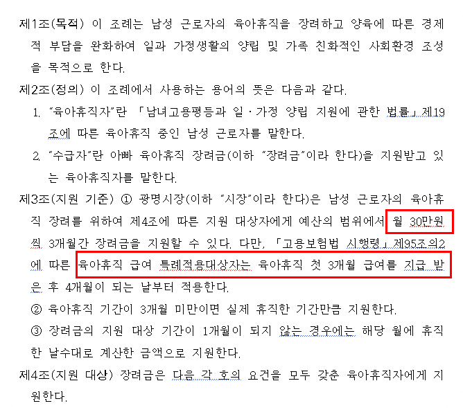 아빠육아휴직 지원대상(경기도 광명시 기준)