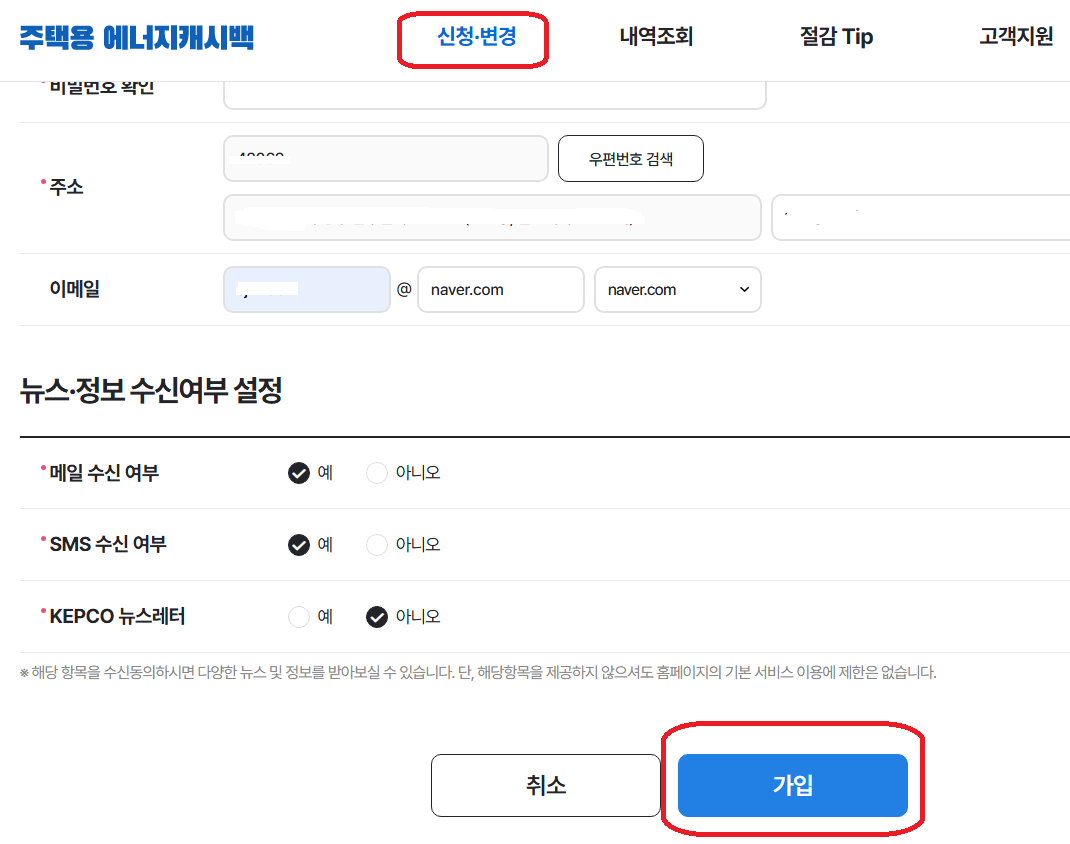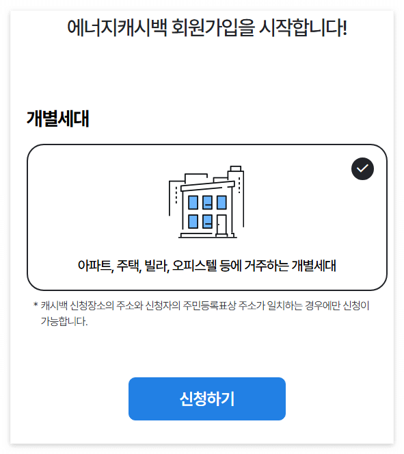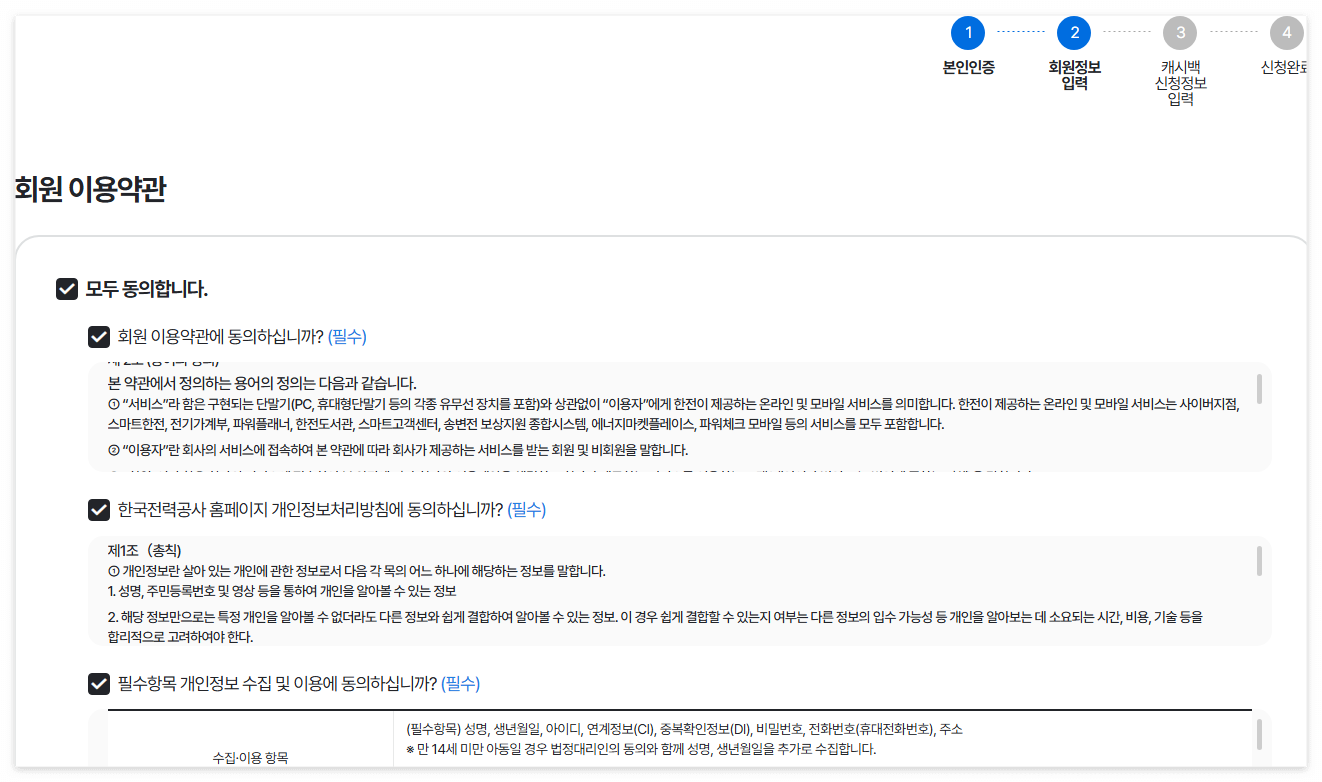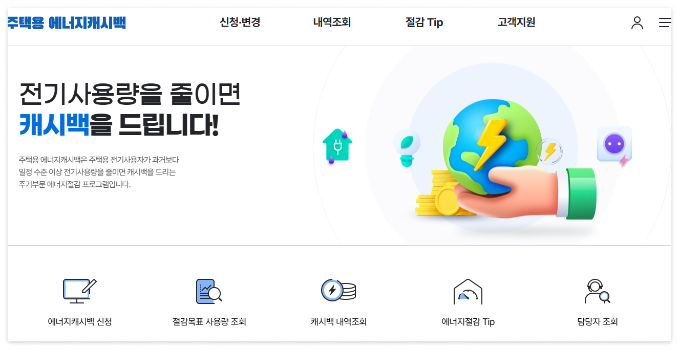 주택용에너지캐시백 신청도 동일한 절차를 따릅니다.