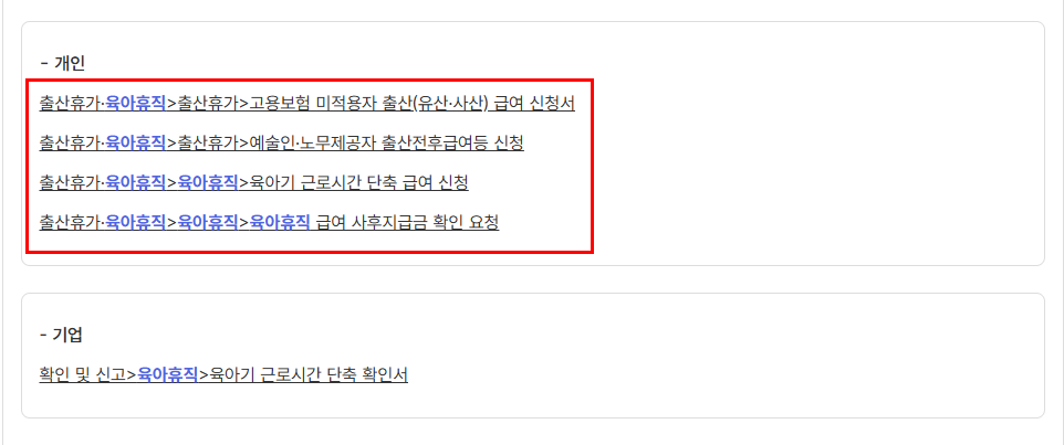 제공근거 [법령] 남녀고용평등과 일ㆍ가정 양립 지원에 관한 법률(제19조) [법령] 고용보험법(제70조)