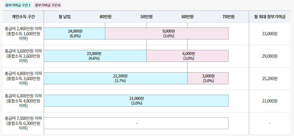 1. 납입액에 비례해 소득구간별 정부기여금 지원
