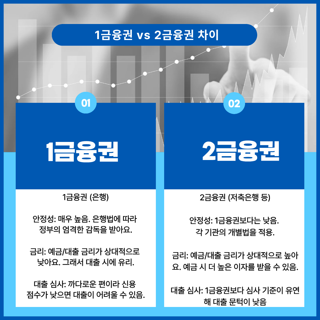 - 선택 기준: 돈을 빌릴 땐 1금융권이, 돈을 모을 땐 2금융권이 유리할 수 있지만, 상품별 조건을 꼼꼼히 비교하는 것이 가장 중요해요.