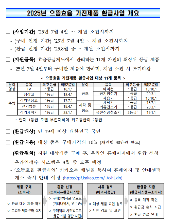 1등급가전제품환급 대상은 25년 7월4일 이후 구매 분 부터 된다고 하니, 조금 아쉽습니다.