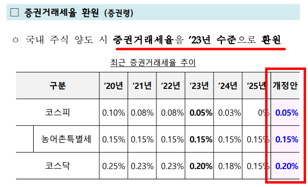 3.코스피, 코스닥 증권거래세율이 기존 0.15%에서 0.20%로 상향