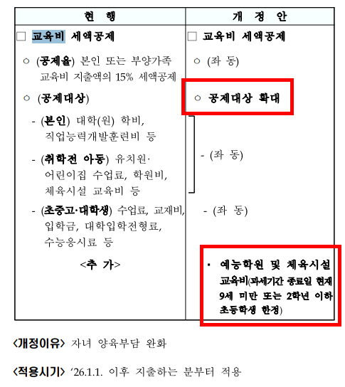 공제대상이 확대 되면서 예체능 학원비가 공제 대상에 포함되고, 연 300만원 한도 내에서 공제받을 수 있습니다.